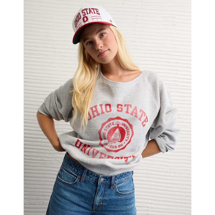 AE Ohio State Buckeyes Graphic Off The Shoulder Sweatshirt – Heather Gray