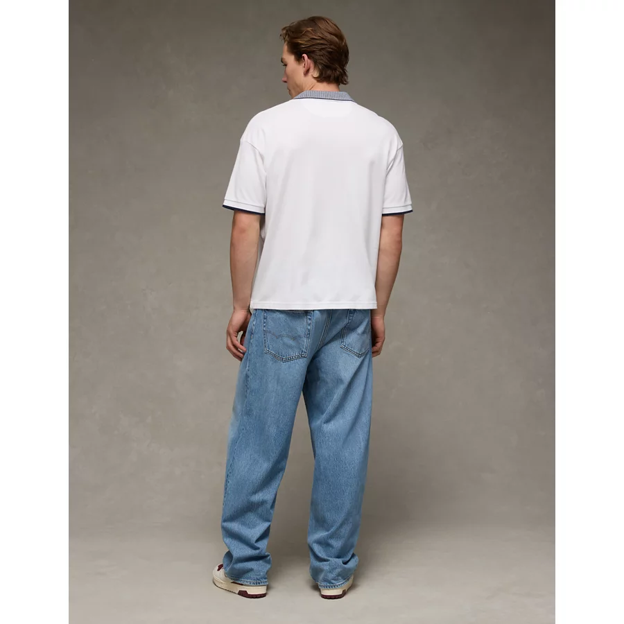 AE Boxy Stretch Pique Polo Shirt – White Washed