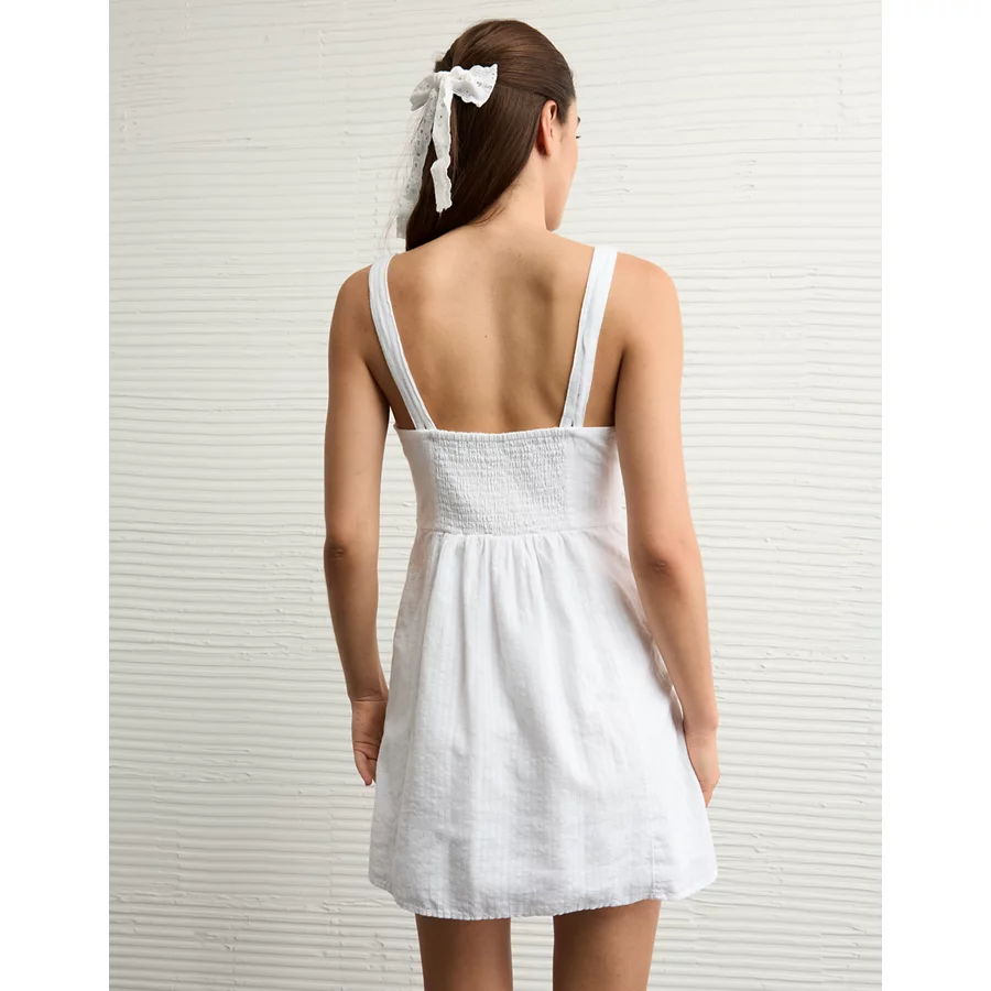 AE Linen-Blend Cut-Out Mini Dress – Ecru Denim