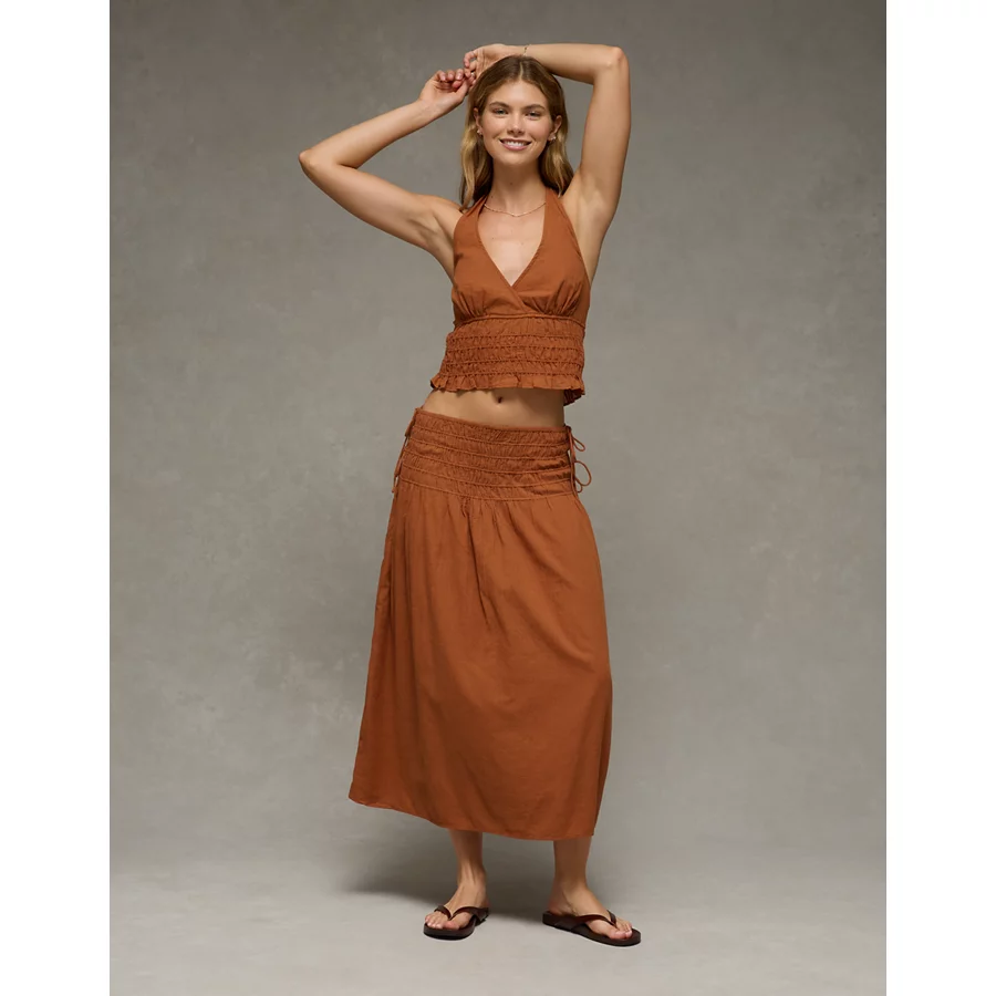 AE High-Waisted Tie Side Maxi Skirt – Amber Brown