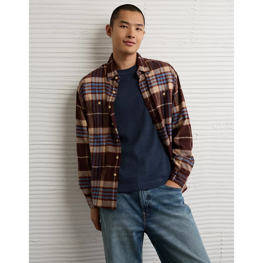 AE Relaxed Fit Everyday Flannel Shirt – Burgundy