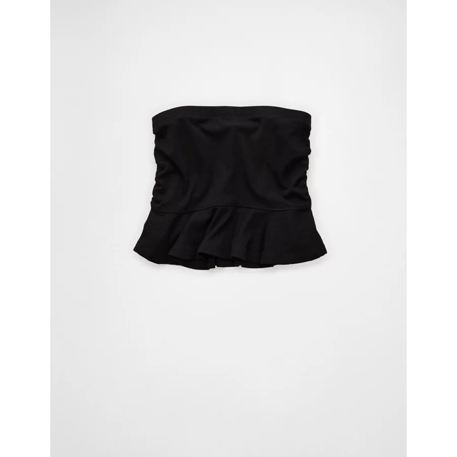 AE Ruched Peplum Tank Top With Removable Straps – True Black