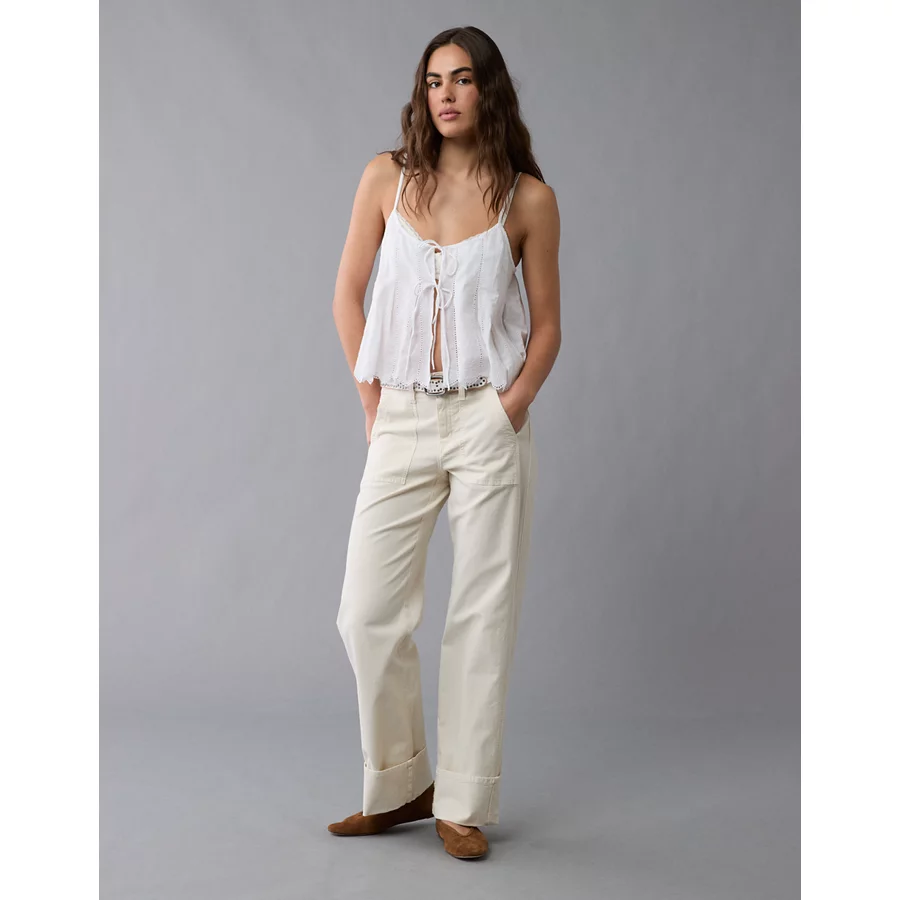 AE Flex Loose Cropped Trouser Pant – Khaki