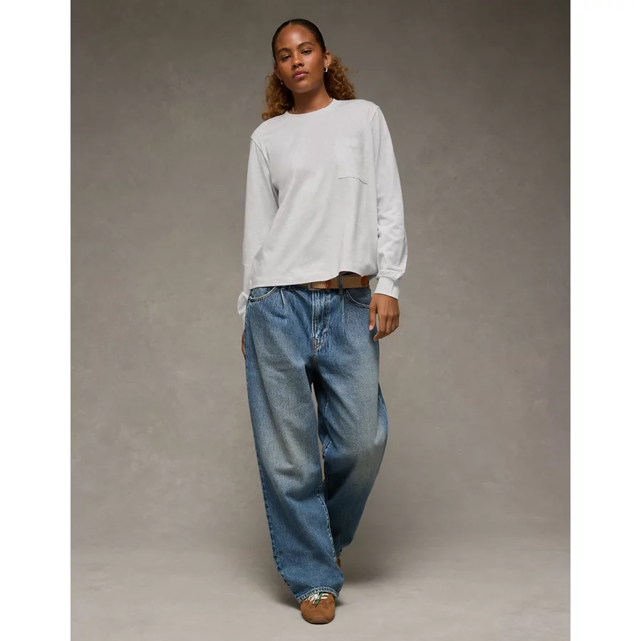 AE Dreamy Drape Strigid Barrel Jean – Dune Khaki