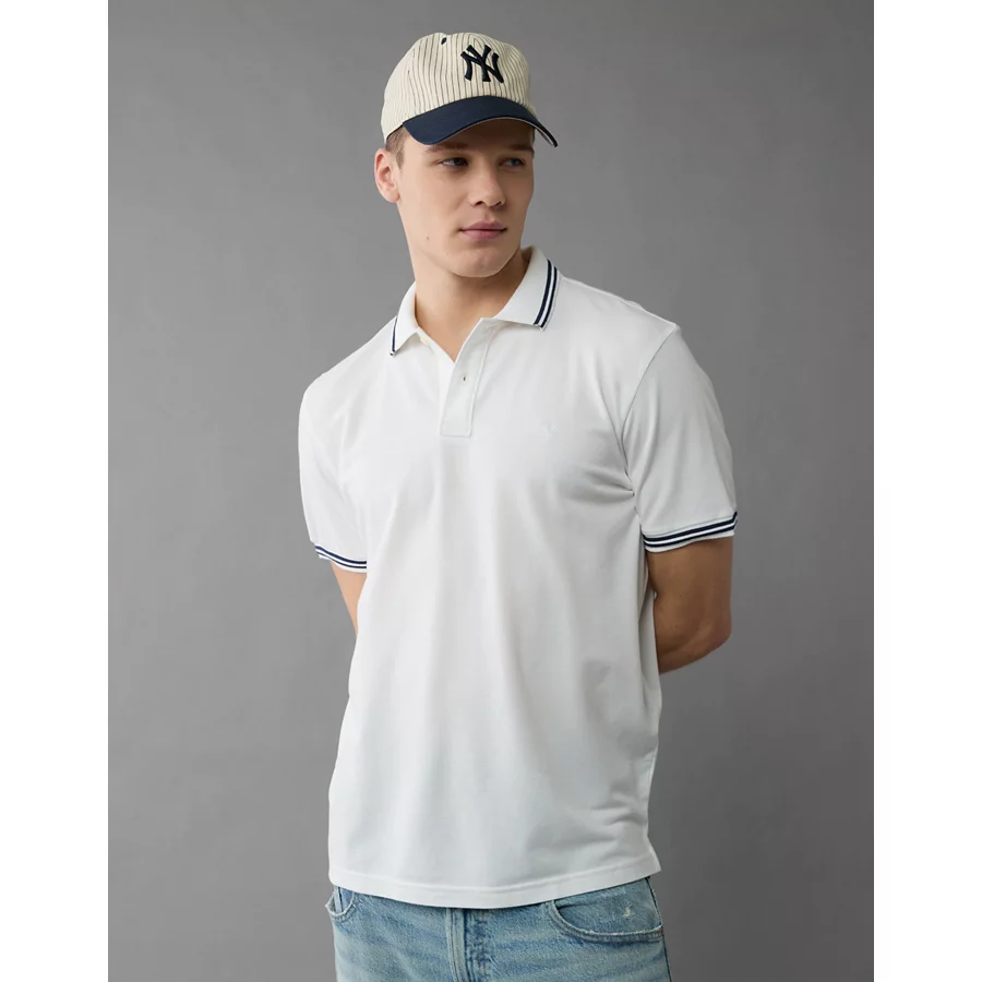 Super soft pique fabric with added stretchPolo collar with button placketThis is Real Good: Made with the planet in mind