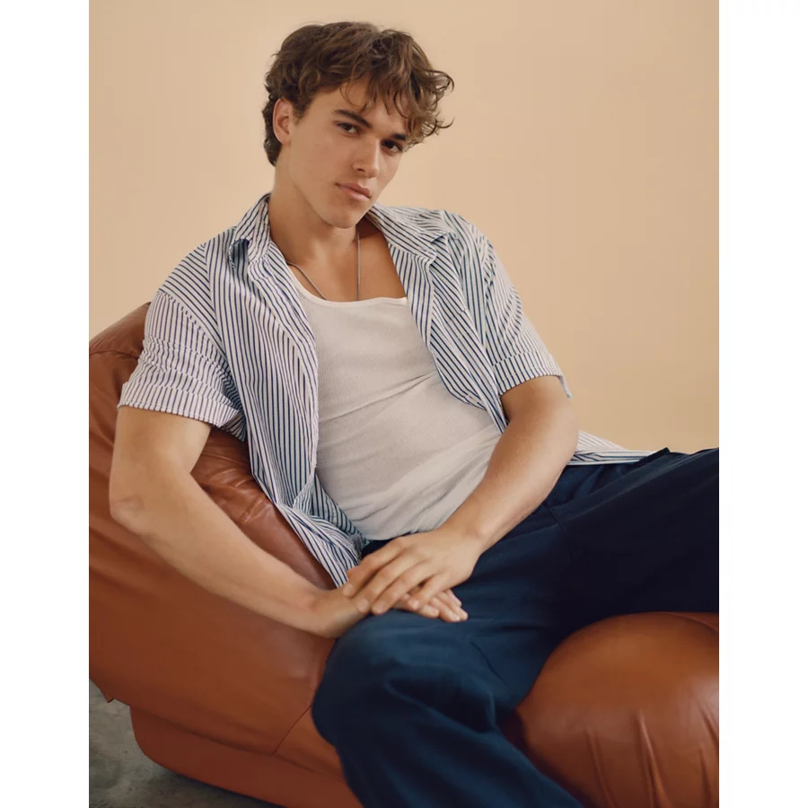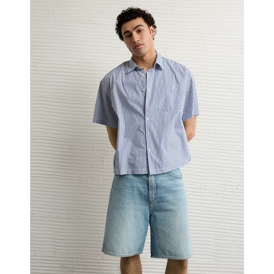 AE Poolside Poplin Striped Button-Up Shirt – Cerulean Blue