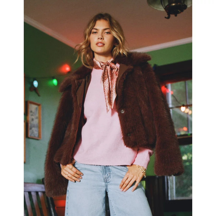 AE Faux Fur Coat – Brown
