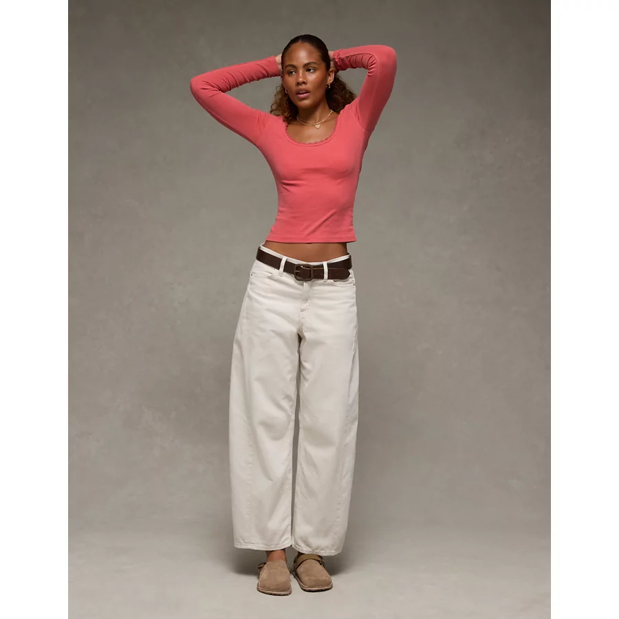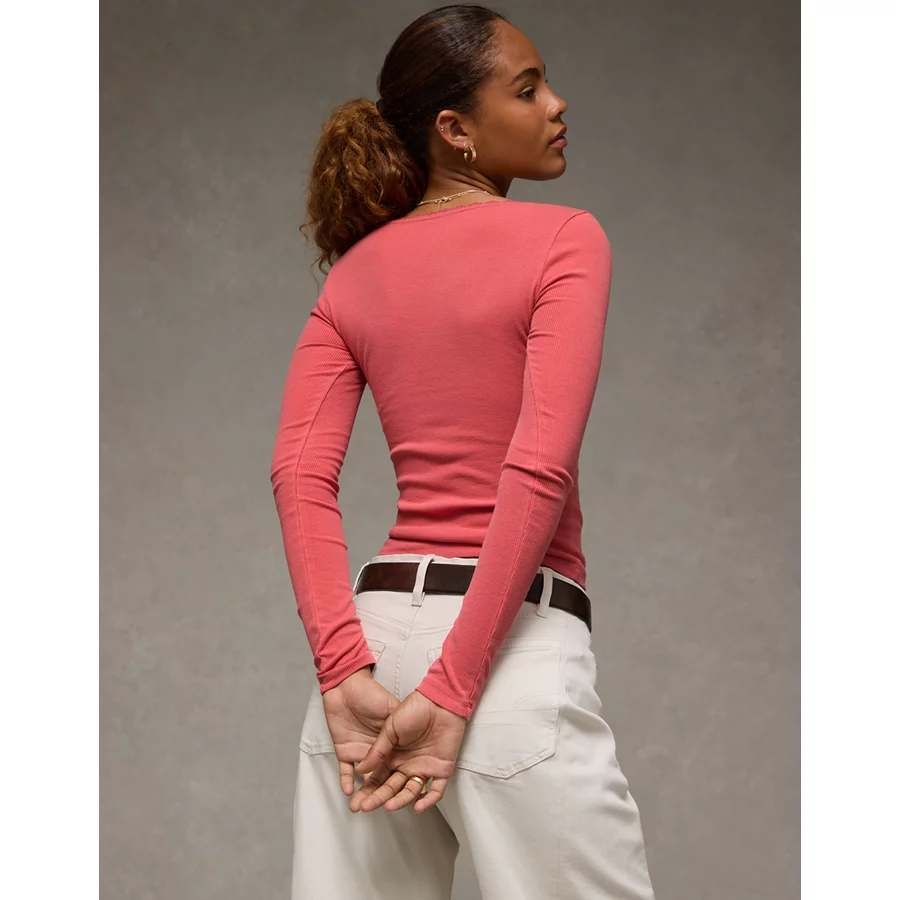 AE Lace-Trim Long Sleeve T-Shirt – Rose