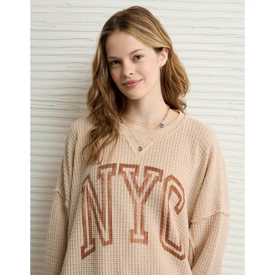 AE Big Hug Crew Neck Waffle Sweatshirt – Oatmeal Heather