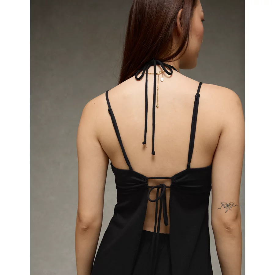 Super soft knit fabricStrappy top with halter neck and normal spaghetti strapsDeep v-neckTie back detailAttached at front 57% Cotton, 38%