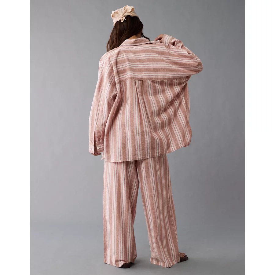 AE Go Big Linen-Blend Oversized Striped Shirt – Pink