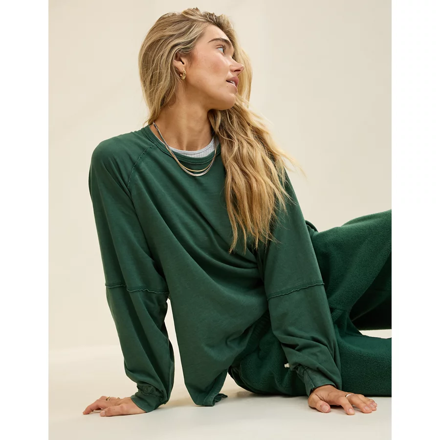 Aerie Cozy Long Sleeve Oversized Boyfriend T-Shirt – Rugged Green