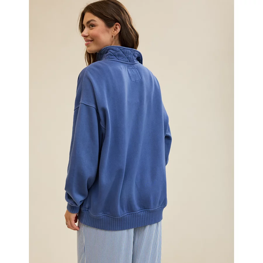 Real Good Everyday fleeceRibbed trim on the cuffs and hemQuilted deets on the neckline and placketThis style is washed so