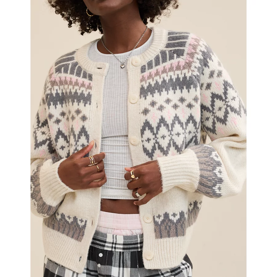 Real Good cozy yarnsFairisle printRibbed trim on neckline, cuffs and hem 70% Recycled Polyester, 23% Acrylic, 7% NylonMachine washImported Classic
