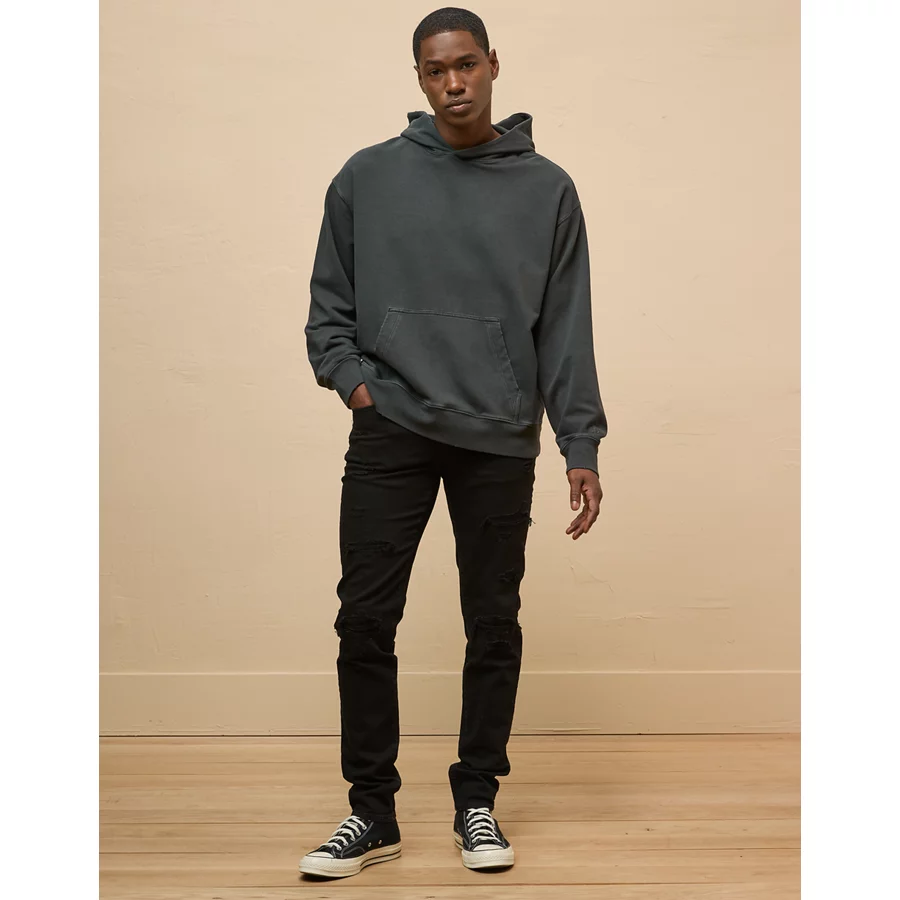 AE AirFlex+ Athletic Skinny Patched Jean – Destroyed Black