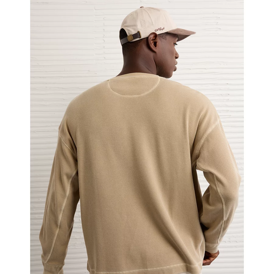 AE Boxy Washed Thermal Henley Shirt – Tan