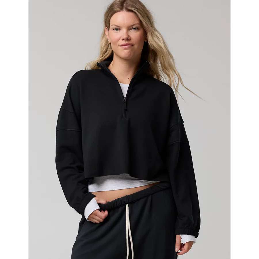 OFFLINE By Aerie OTT Seamed Quarter Zip Sweatshirt – True Black