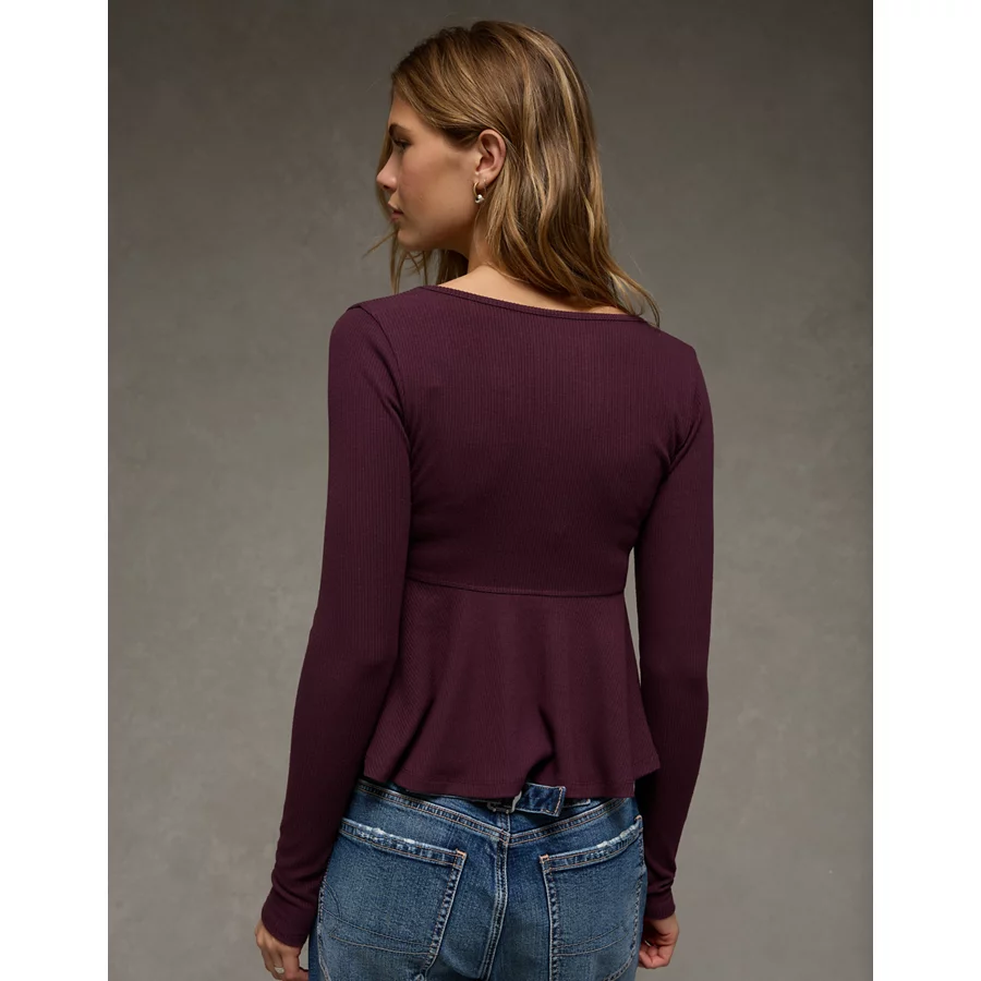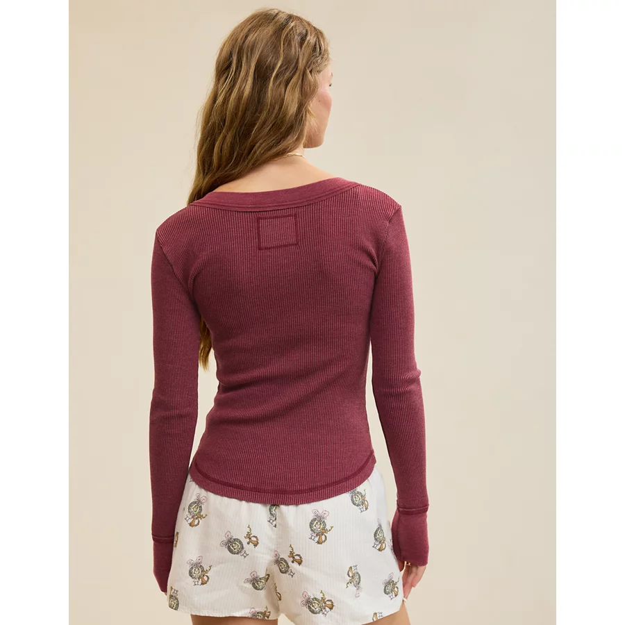 Aerie Henley Essential Layering T-Shirt – Deep Cherry