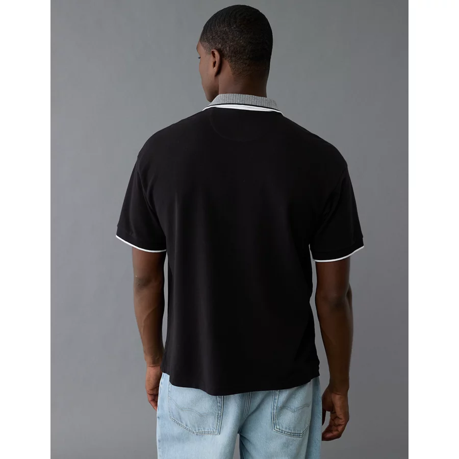 Super soft pique with stretchContrast collarPolo button placketThis is Real Good: Made with the planet in mind & a promise
