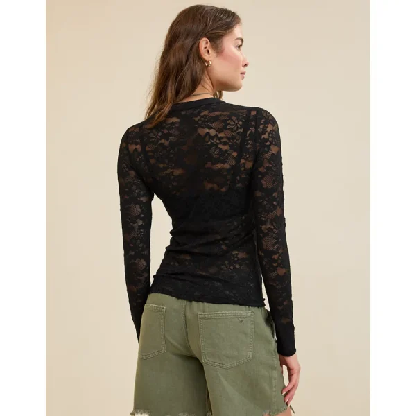 Aerie Essential Lace Layering T-Shirt – True Black