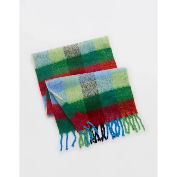 Aerie Fringe Plaid Blanket Scarf – Green