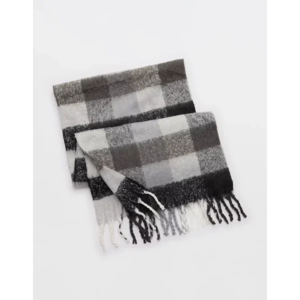 Aerie Fringe Plaid Blanket Scarf – Shell Gray