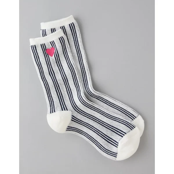 AE Embroidered Striped Crew Socks – Brown