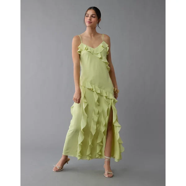 AE Asymmetrical Ruffle Maxi Slip Dress – Lime