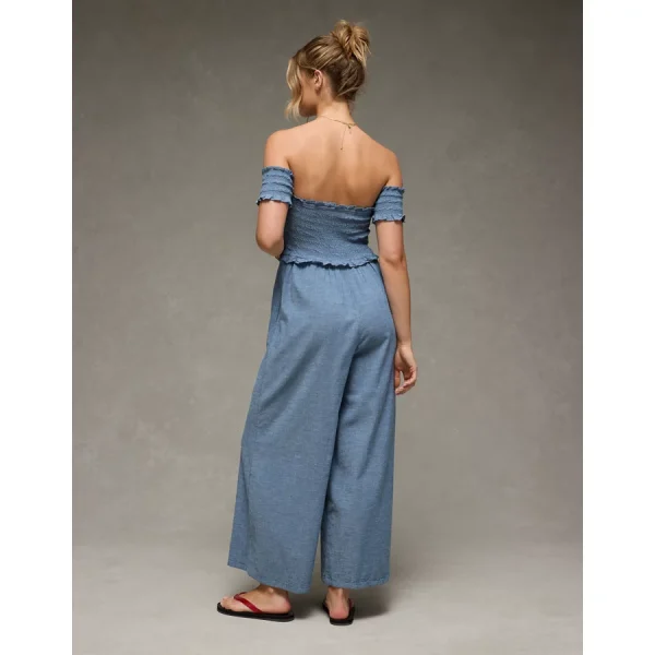 AE Off The Shoulder Tie Front Jumpsuit – Chambray Blue