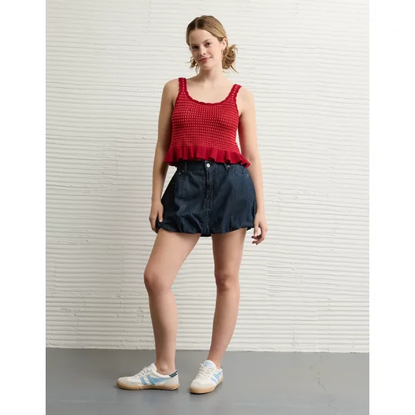 AE Crochet Peplum Tank Top – Medium Brown