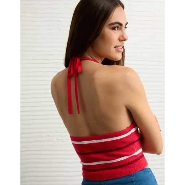 AE Cropped Striped Sweater Halter Top – Cherry