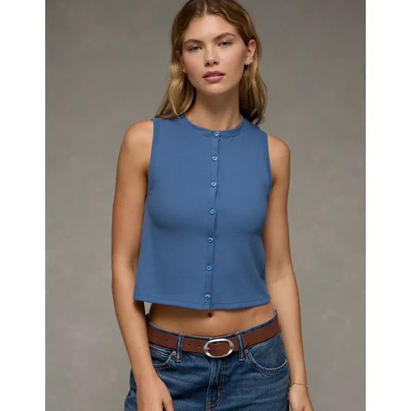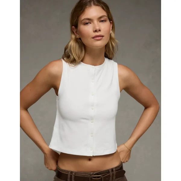 Soft ribbed fabricHigh crew neckButton-up front 63% Polyester, 34% Viscose, 3% ElastaneMachine washImported Classic fitSleeveless