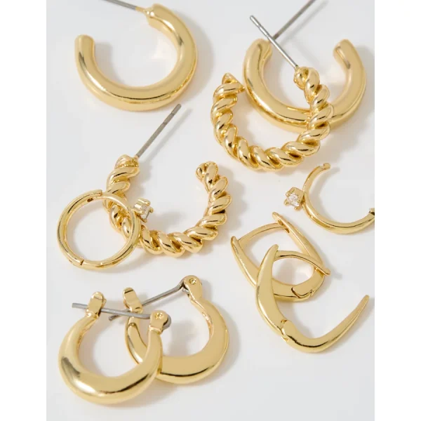 Aerie Basic Hoop Earrings 5-Pack – Gold