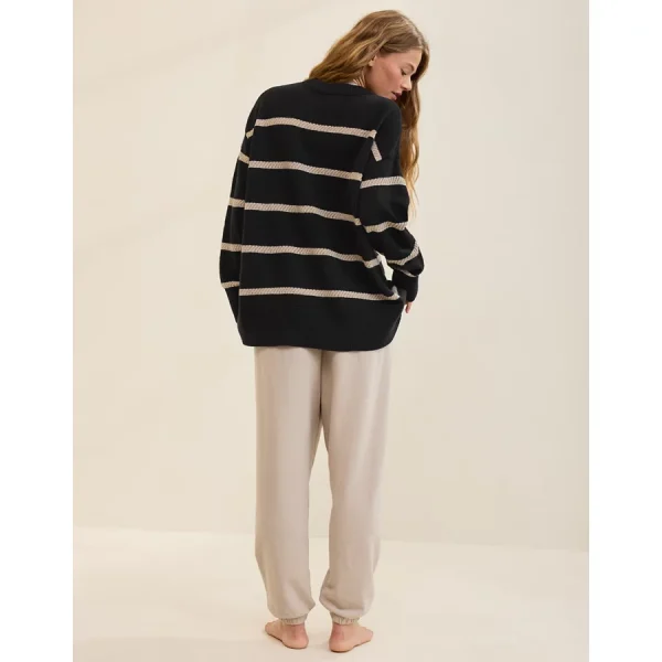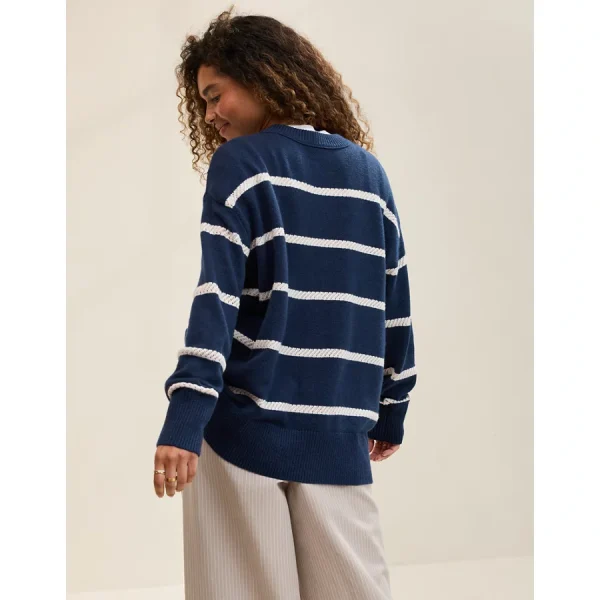 Real Good lightweight yarnRibbed trim on the neckline, cuffs and hemopen knit stripe detailAccessibility deets: wide neck and over-the-head access