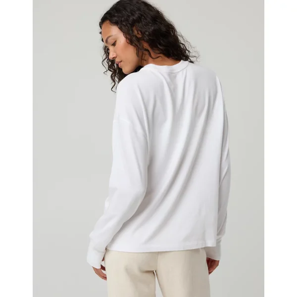 OFFLINE By Aerie Let’s Stretch Long Sleeve Boyfriend T-Shirt – White