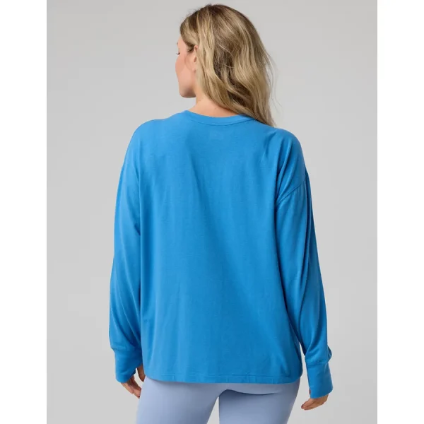 OFFLINE By Aerie Let’s Stretch Long Sleeve Boyfriend T-Shirt – Sky Blue