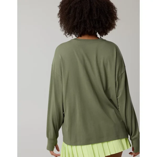 OFFLINE By Aerie Let’s Stretch Long Sleeve Boyfriend T-Shirt – Deep Earth