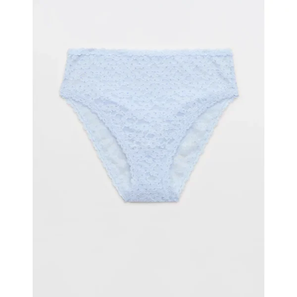 Show Off Flocked Vintage Lace High Waisted Bikini Underwear – Eyelet Blue