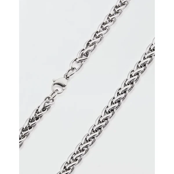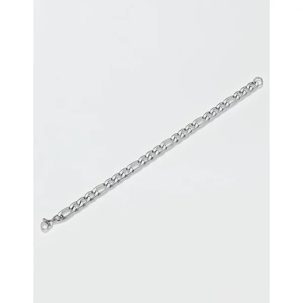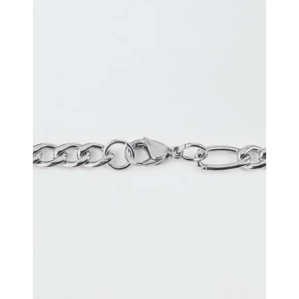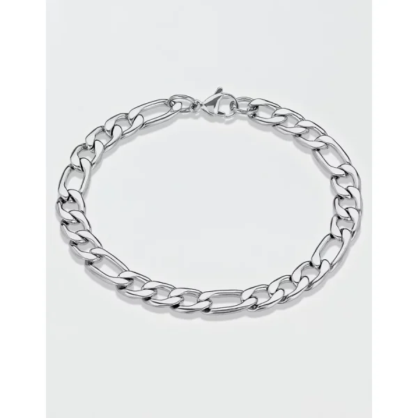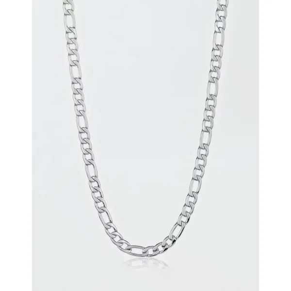 9/32 in. (7.5 mm) wide x 24 in. long x 2.6 mm thickPolished hypoallergenic stainless steelFigaro chainLobster claspWeight: 46 gmNot