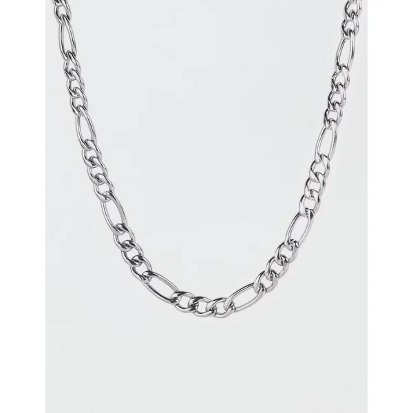 West Coast Jewelry Polished Stainless Steel Figaro Chain Necklace – Silver