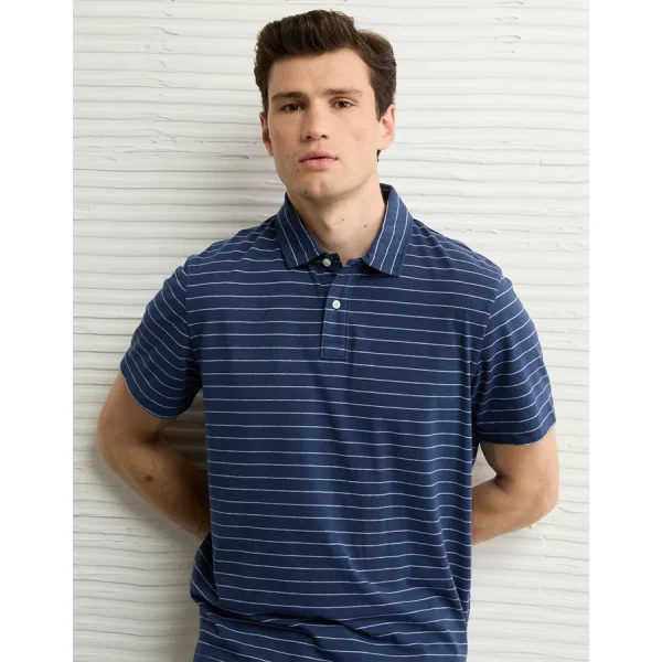 Super soft jersey with added stretchPolo collar with button placketAE 24/7 logoThis is Real Good: Made with the planet in