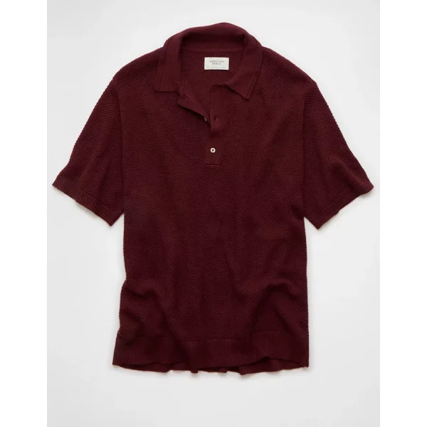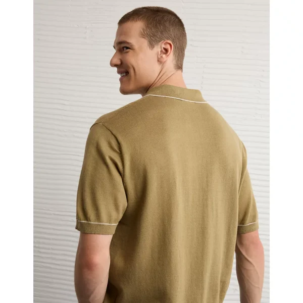 AE Shaker Button-Up Sweater Polo Shirt – Cream