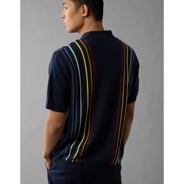 AE Pride Weekend Button-Up Sweater Polo Shirt – Navy