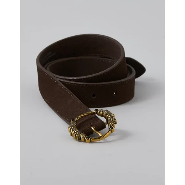 AE Suede Oval Twist-Buckle Belt – Chocolate