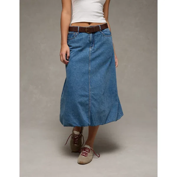 AE High-Waisted Bubble Midi Skirt – Medium Wash