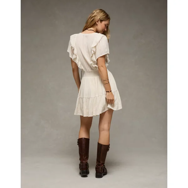 AE V-Neck Ruffle Mini Dress – Cream
