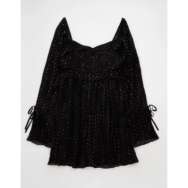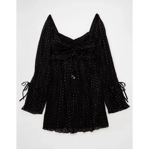 Sweetheart necklineLong, flowy sleevesFlyaway hemLong sleeves 100% Recycled PolyesterMachine washImported Babydoll fitMini length
