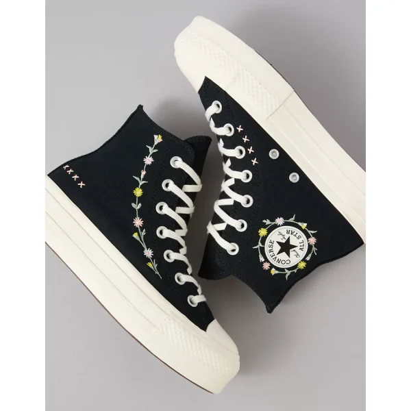 Converse Chuck Taylor All Star Embroidered Flowers High-Top Sneaker – Black