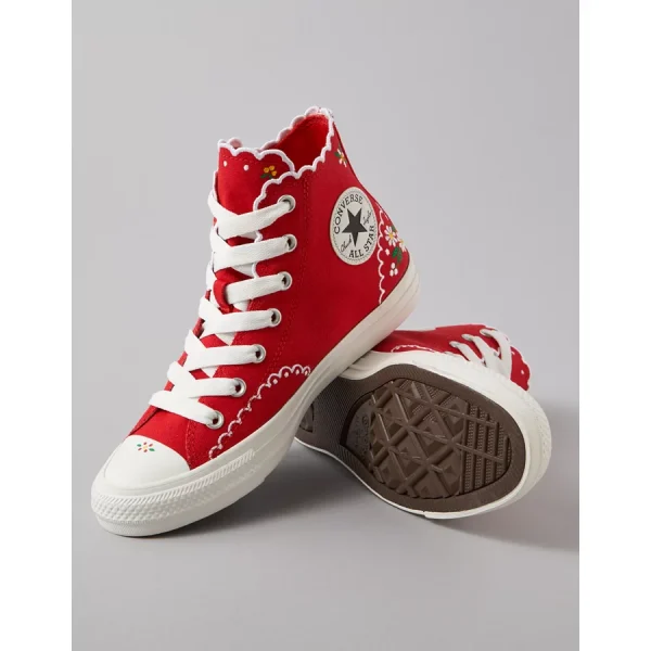 Converse Chuck Taylor All Star Embroidered Flowers High-Top Sneaker – Red