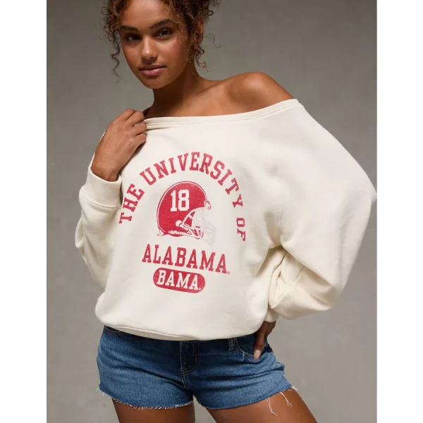 AE Alabama Crimson Tide Graphic Off The Shoulder Sweatshirt – Cream